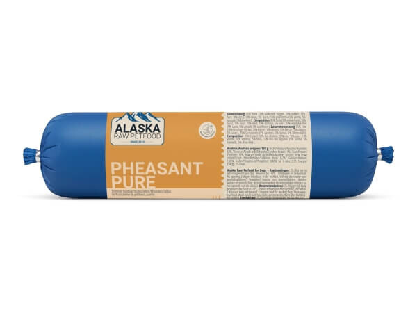 85% Fazant: lijven, zonder kop, krop, veren en filet, 15% groentemix: wortel (5%), spinazie (5%), bloemkool (5%).